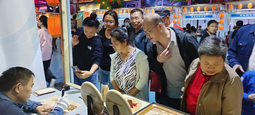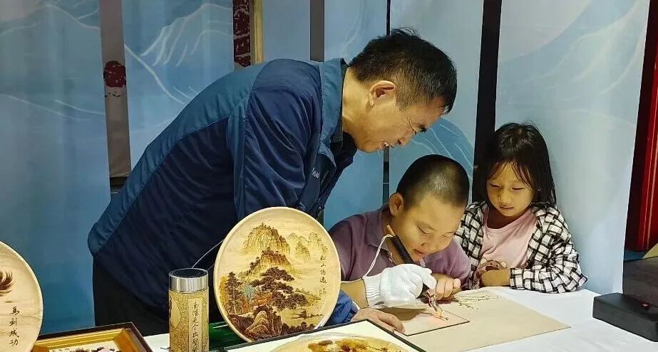 本次南阳烙画参展作品涵盖文创用品、烙画摆件、赏盘等系列,省级工艺美术大师卢合语现场展演烙画技艺,通过"展览+体验+互动"模式,让观众近距离感受"火针刺绣"的独特魅力。