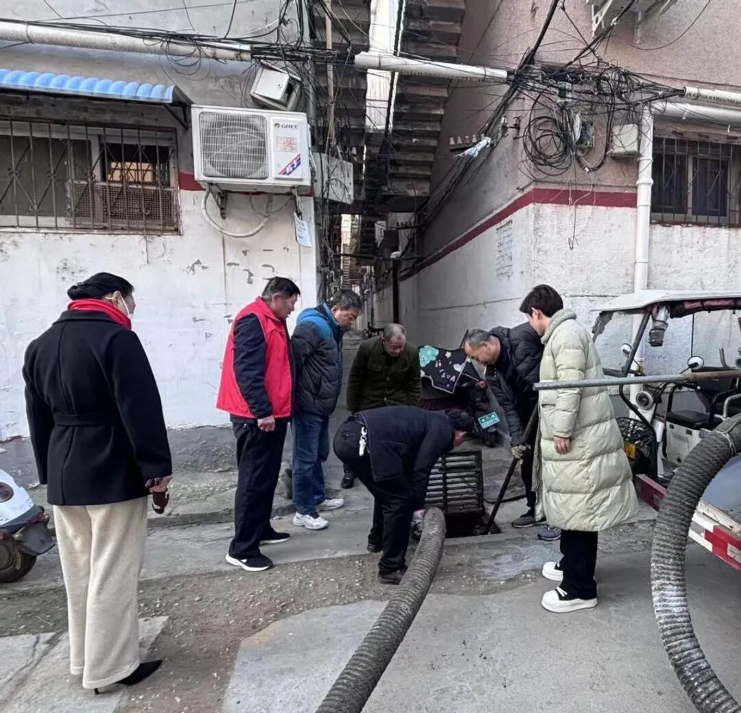 为保障施工顺利推进,施工前一天,社区网格长牵头,带领专兼职网格员组成服务小队,通过流动小喇叭广播、张贴公告、入户当面告知等多种方式,逐一提醒居民提前移走公厕周边车辆,确保施工工具车能够顺利进场作业。经过数小时的紧张疏通与清理,堵塞的化粪池彻底通畅,公厕内外也进行了全面消杀,周边环境很快恢复整洁,切实解决了居民的“急难愁盼”。