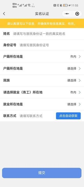 在此处需填写姓名、身份证号,户籍所在地、民族、就业(务工) 所在地、联系方式。