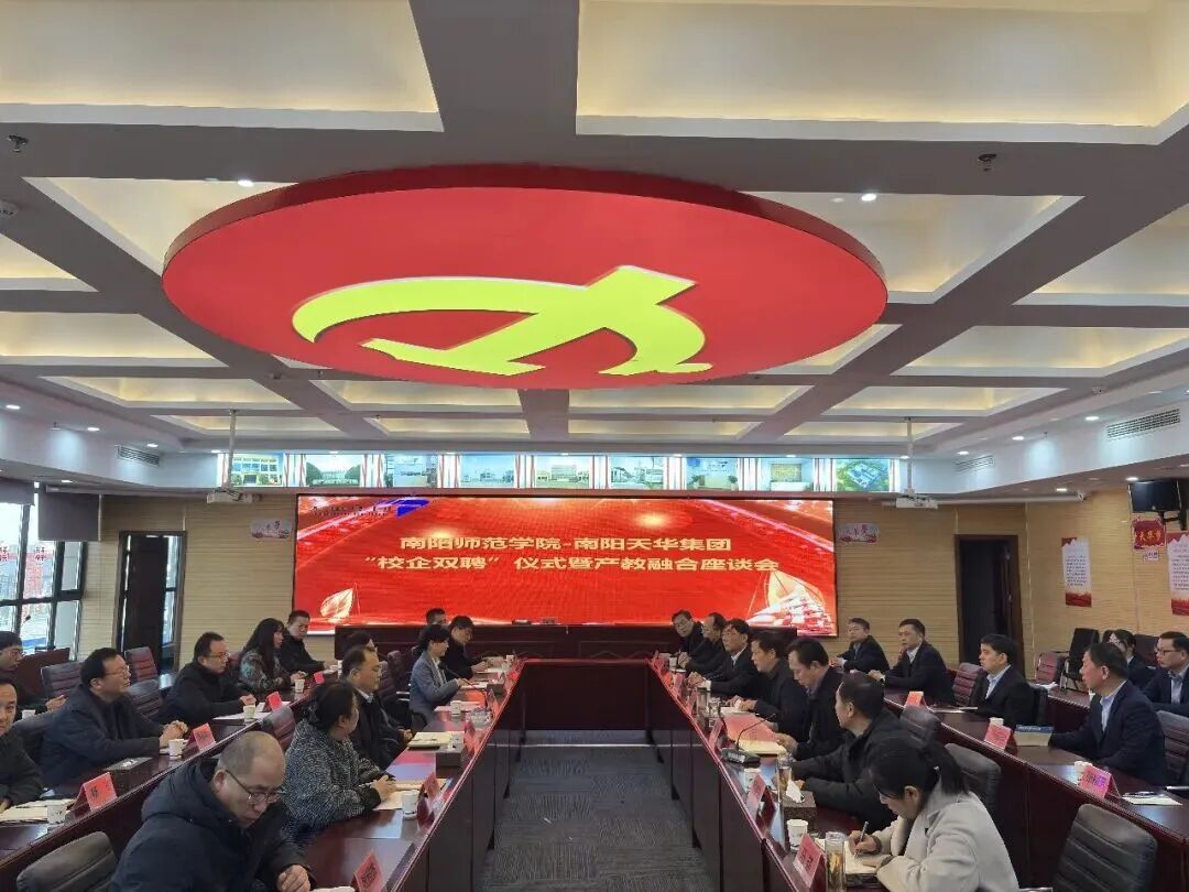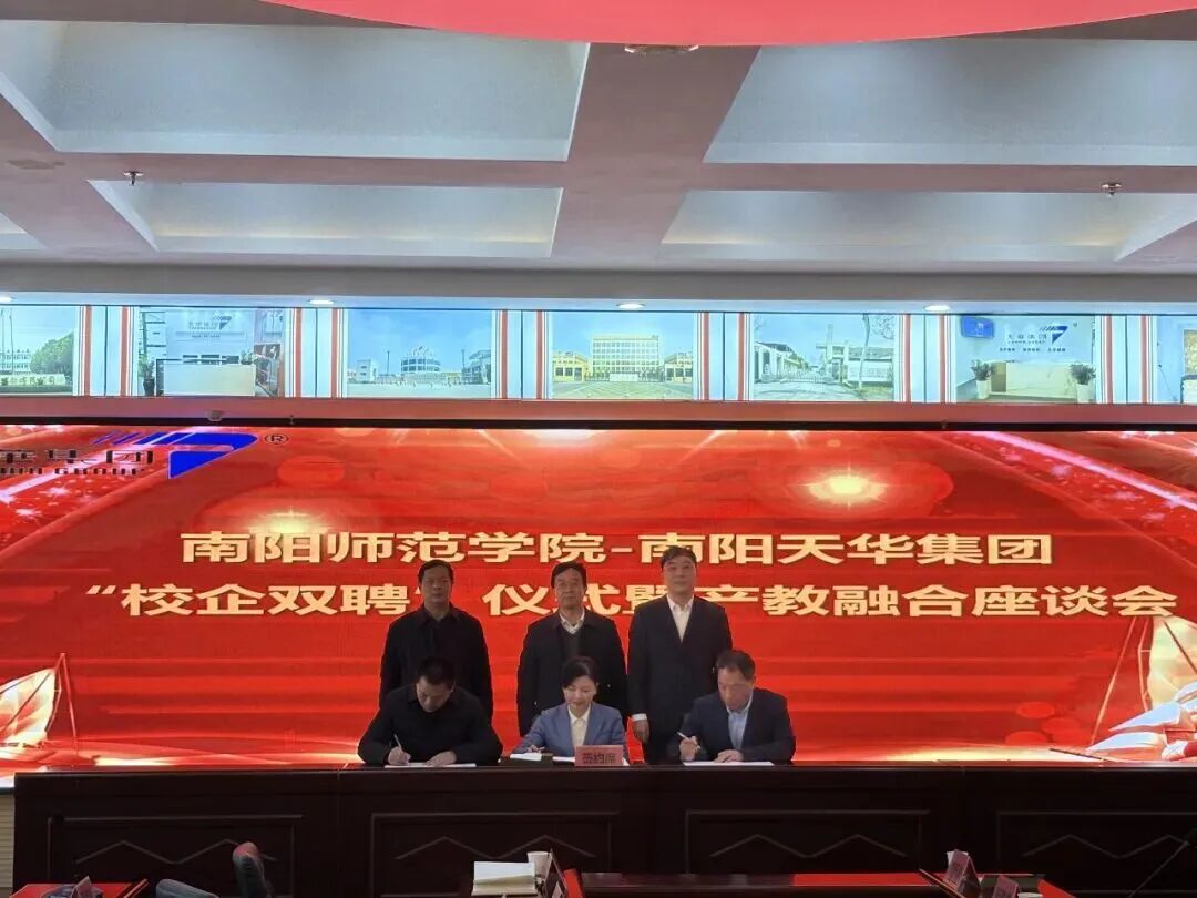 1月6日,南阳师范学院与天华集团“校企双聘”签约仪式暨产教融合座谈会在卧龙区举行,这是卧龙区推动校企人才共享、深化产教融合的务实举措,也是促进教育链、人才链与产业链、创新链有机衔接的创新之举。南阳师范学院党委书记张宝锋,市委组织部二级调研员杨美,天华集团董事长王峰,卧龙区先进制造业开发区管委会副主任马超等出席活动。