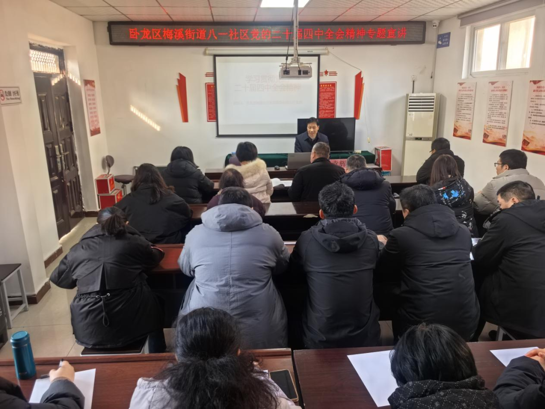 为深入学习宣传贯彻党的二十届四中全会精神,引导广大基层党员干部群众把思想和行动统一到全会精神上来,1月8日上午,卧龙区先进制造业开发区管委会副主任袁辉到梅溪街道八一社区开展专题宣讲。