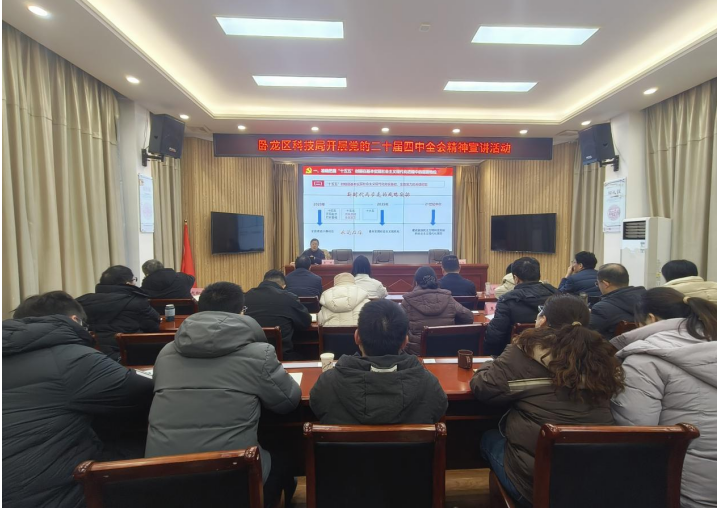 为深入学习贯彻党的二十届四中全会精神,引导广大党员干部准确把握“十五五”时期发展的总体要求和战略部署,1月22日上午,区“百姓宣讲团”成员、区委党校讲师康琳面向科技局全体党员干部开展党的二十届四中全会精神专题宣讲,围绕全会精神的核心要义和实践要求,进行了系统解读和深入阐述。