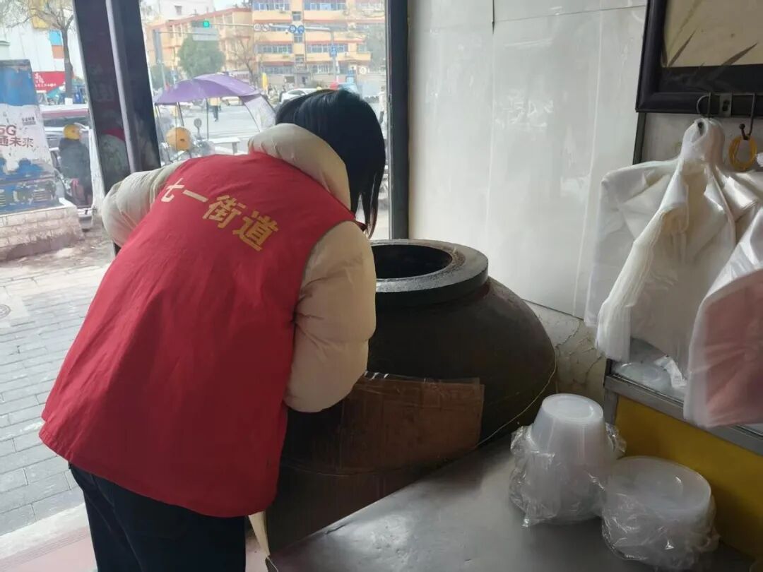 巡查工作紧密贴合冬季大气污染防控特点,坚持“聚焦重点区域、聚焦重点时段、聚焦重点问题”原则,实施精准化整治。巡查队伍对辖区内沿街门店、餐饮商户及流动摊贩等液化气使用重点点位开展逐户走访、逐项排查,重点检查餐饮商户后厨、散煤易储存区域,细致核查是否存在违规储存、使用散煤的行为。同时,向群众普及散煤燃烧的环境危害与安全隐患,靶向宣传燃煤散烧对大气环境的破坏危害、对身体健康的潜在影响,着力破除居民认知误区,切实增强群众环保意识与行动自觉,推动绿色取暖理念深入人心。