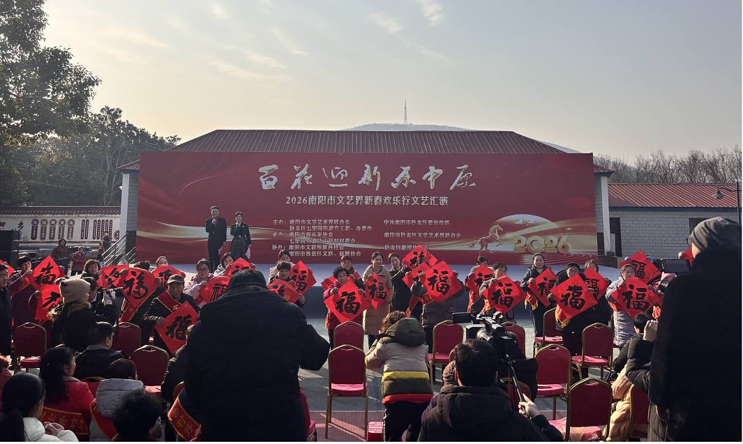 2月7日下午,卧龙区七里园街道达士营村文化广场暖意融融,“百花迎新乐中原”2026南阳市文艺界新春欢乐行文艺汇演在此圆满落幕。演出尾声,一场备受瞩目的2025年度“乡村光荣榜”先进人物表彰温情接续,让现场暖意持续升温。
