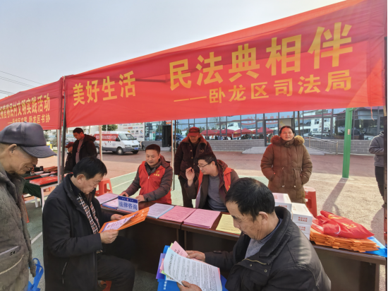 2026年2月10日,值此新春佳节来临之际,卧龙区司法局紧抓2026年文化科技卫生“三下乡”暨“文明实践乡村行”集中活动的有利契机,组织工作人员与普法志愿者深入蒲山镇杨营村,开展以“美好生活 民法典相伴”为主题的春节期间专项法治宣传活动,将丰盛的“法治年货”送到群众家门口,营造了欢乐祥和、崇法尚治的节日氛围。