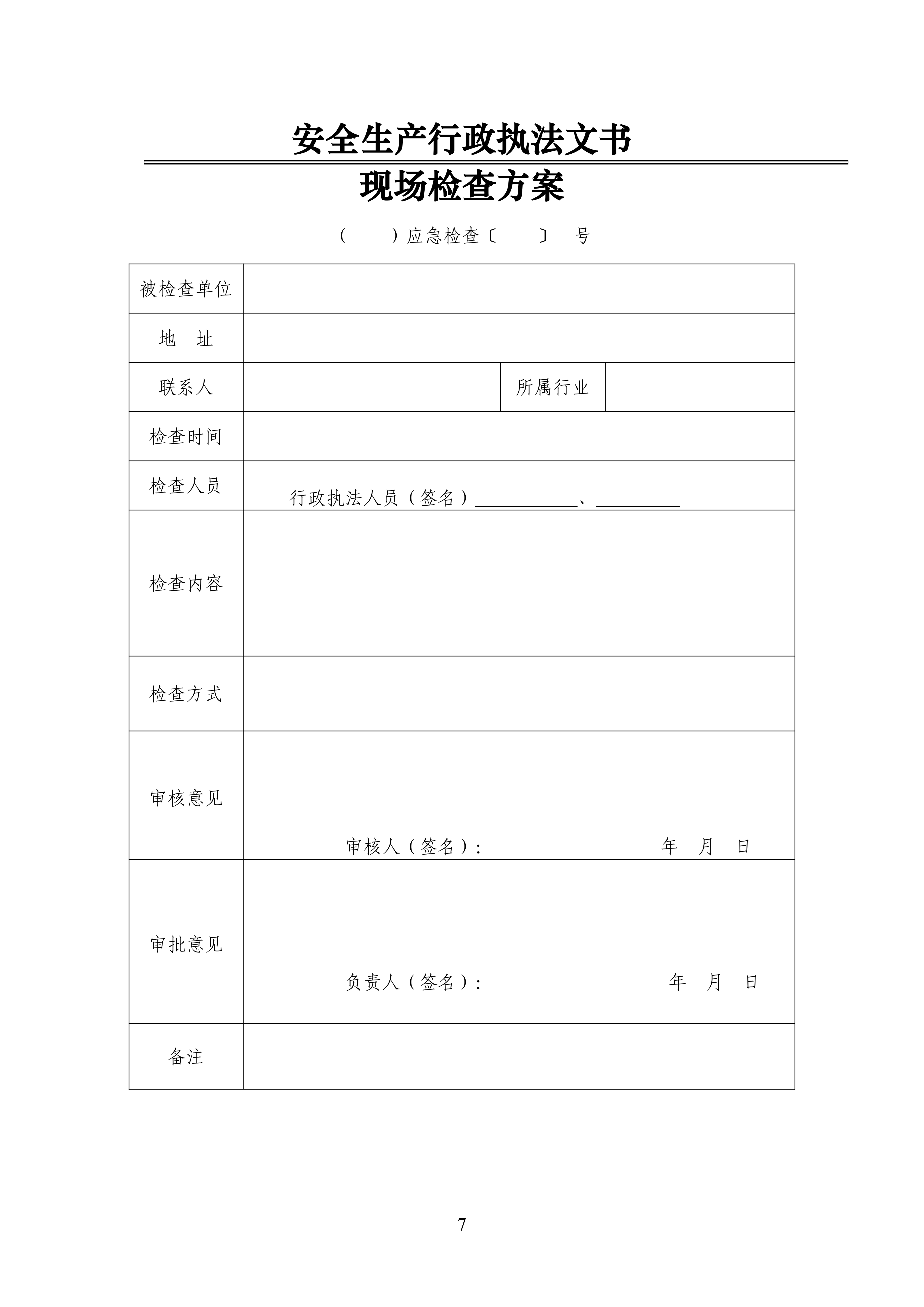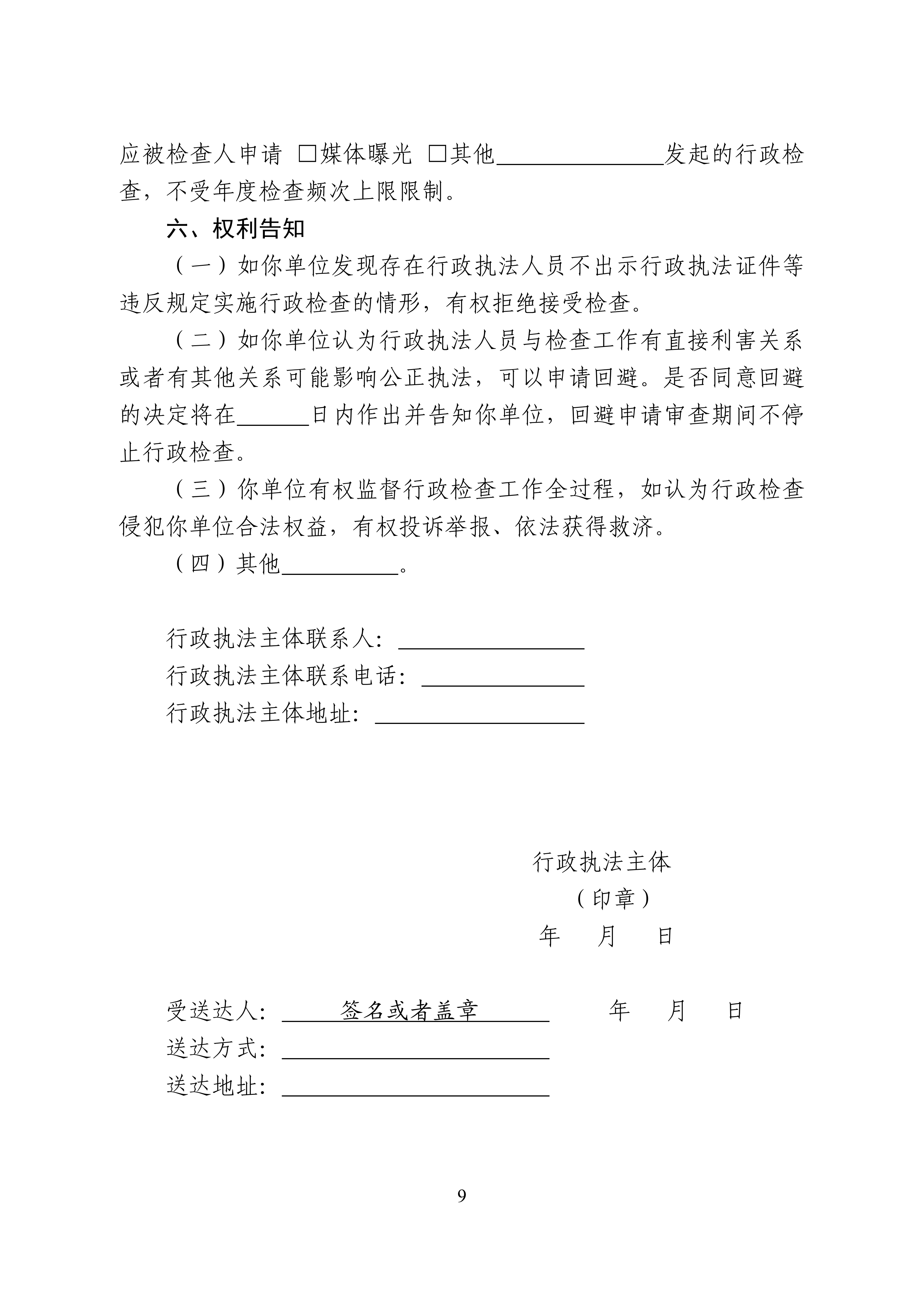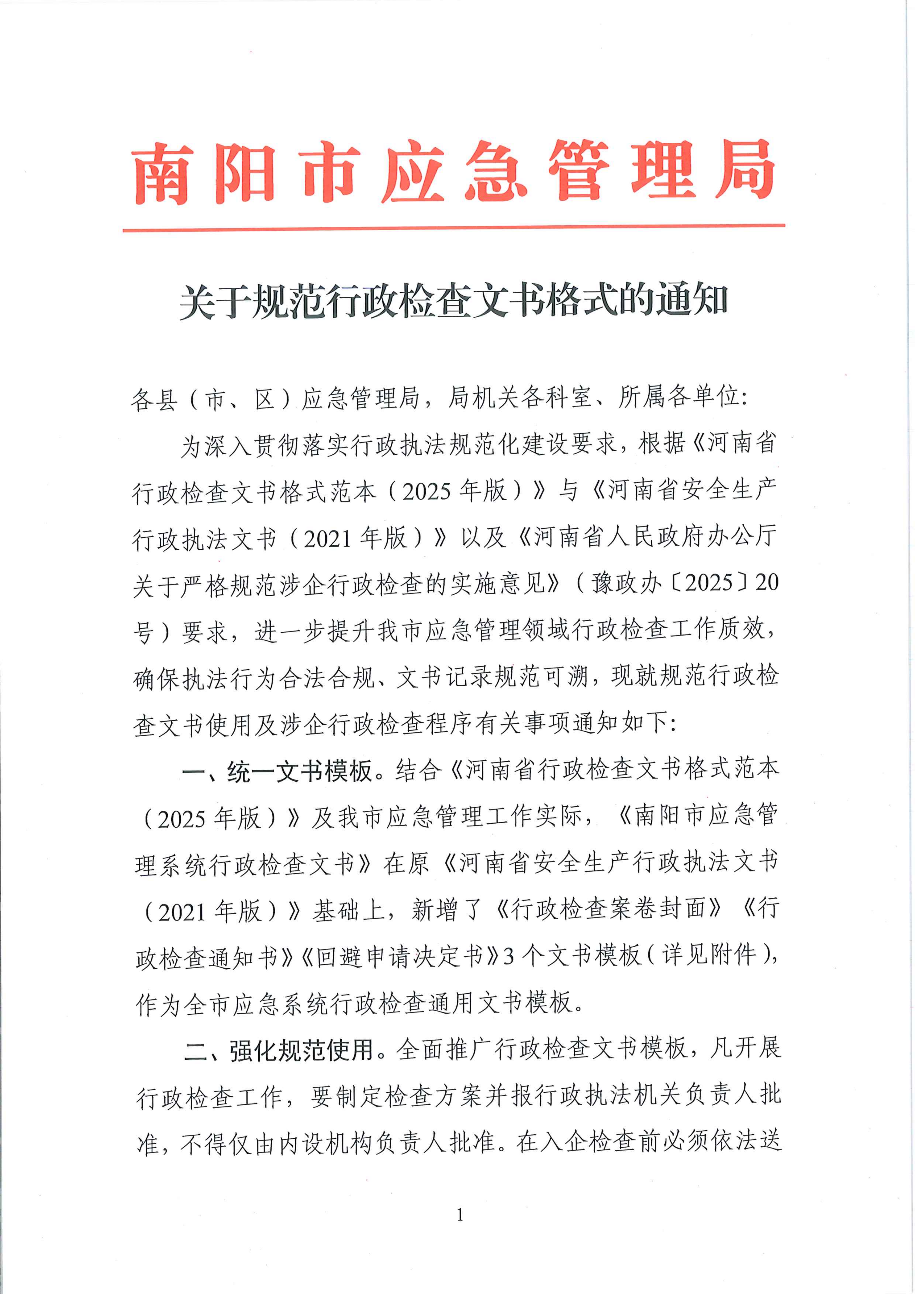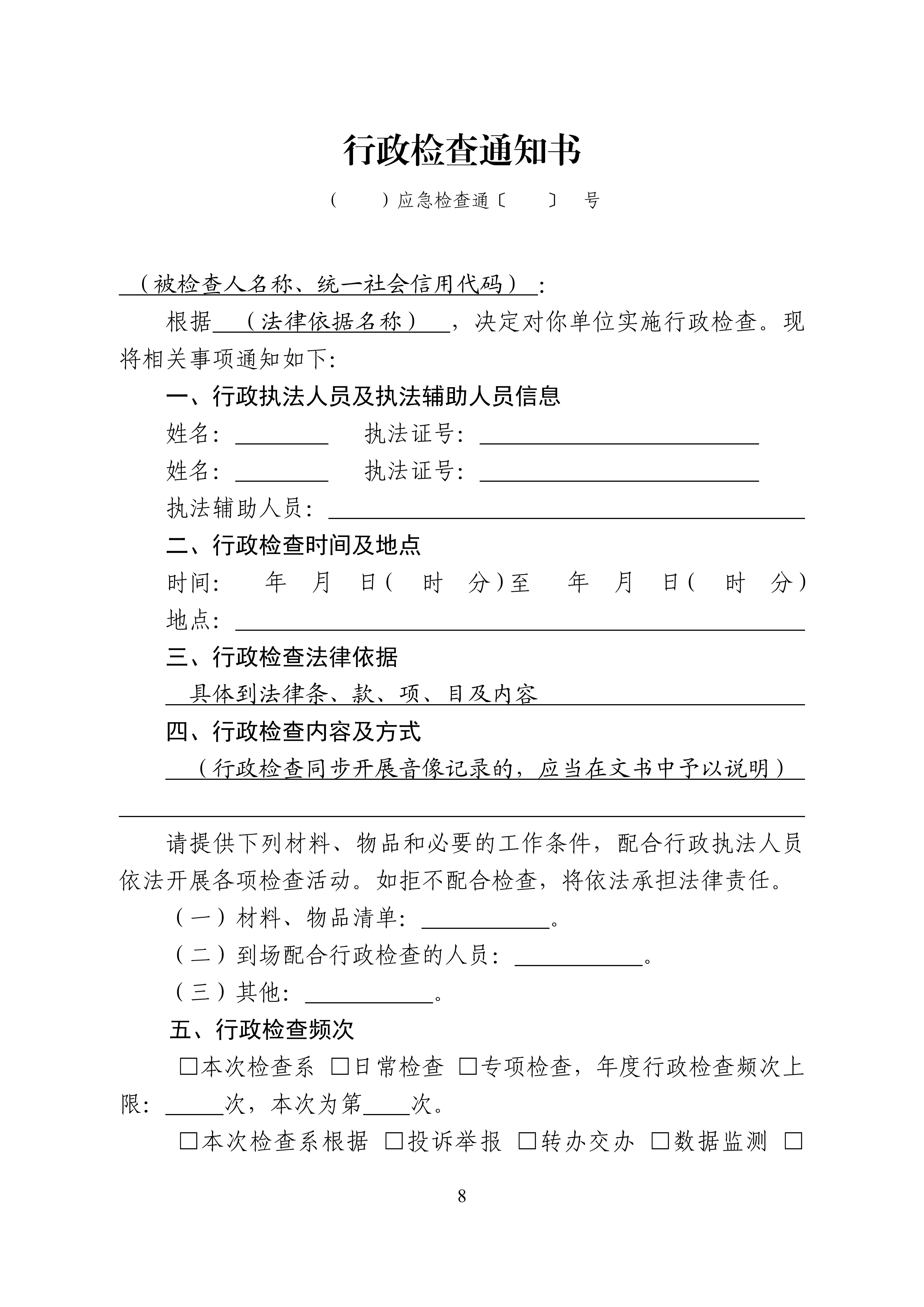 关于规范行政检查文书格式的通知