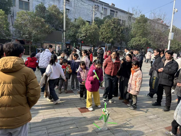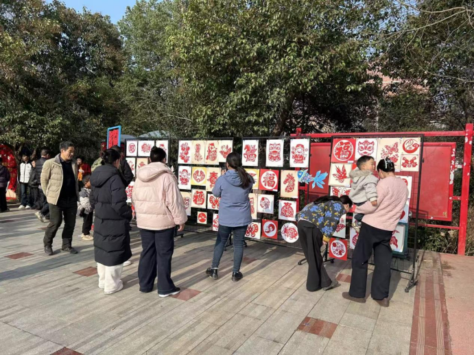 投壶体验区前,大家手持纸箭,屏气凝神,在传统游戏中感受古人的娱乐智慧,欢笑声、喝彩声此起彼伏。剪纸与绘画展览区则宛如一座小型艺术殿堂,一幅幅栩栩如生的剪纸作品展现着民俗魅力,一张张充满童真与创意的绘画作品描绘着对美好生活的向往,吸引了众多群众驻足观赏、拍照留念。