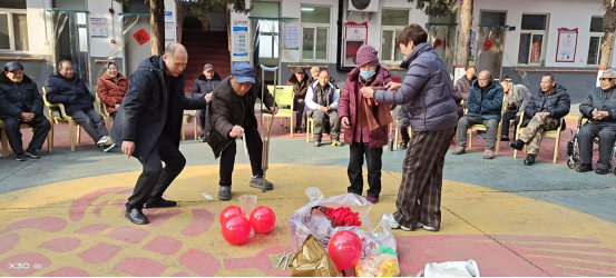 活动现场张灯结彩、洋溢着喜庆祥和的节日氛围。院长及工作人员提前布置场地,准备奖品和道具,确保活动安全有序进行。老人们兴致勃勃地参与各项趣味游戏,现场不时传来阵阵掌声与欢笑声。