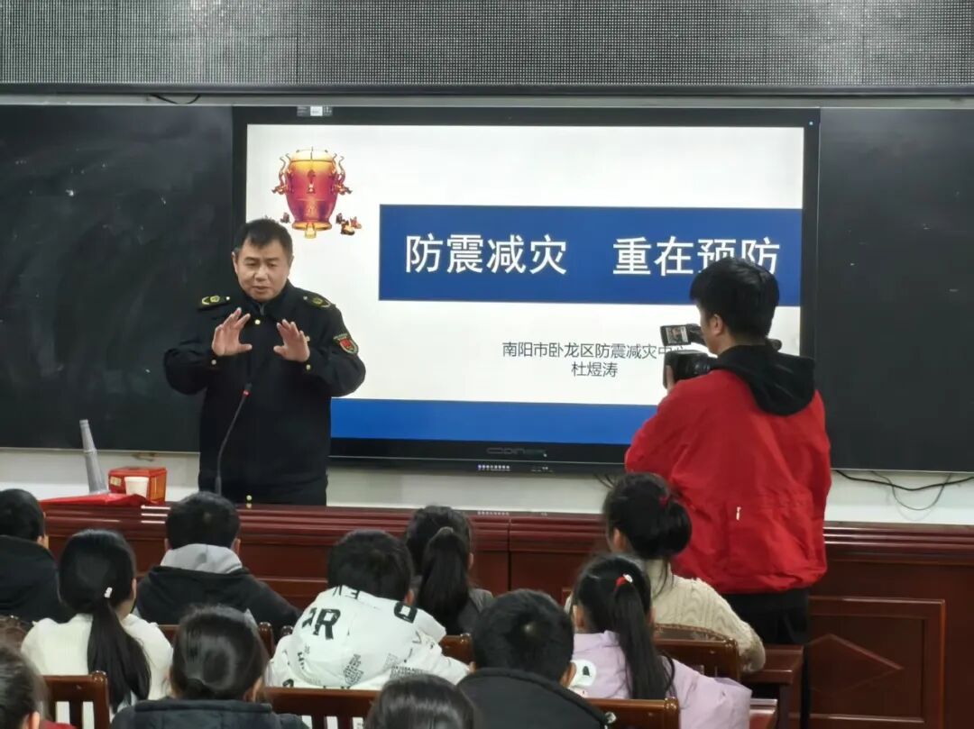 活动伊始,卧龙区应急保障中心主任结合自身工作经验,讲解了校园防震减灾知识。他强调:“地震发生往往伴生火灾、暴雨、滑坡、泥石流等次生灾害,要以模拟地震灾害来临后应对各种灾害为切入点,进行系列综合知识讲解。在此基础上开展防震、防火、防汛、地质灾害等各灾种综合演练,久久为功,人人讲安全,个个会应急,定能收到意想不到的效果。”