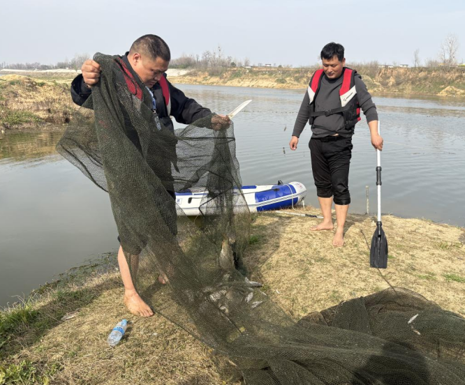 3月18日至20日,联合执法队伍严格落实重点区域、重点时段巡护要求,聚焦白河上游蒲山段、下游英庄段等非法捕捞易发高发区域,开展拉网式水上巡查,重点排查“三无”船舶、残存网具及违规垂钓等违法行为。巡查期间,执法人员在河面共清理拦河网20余米、地笼3个,拆除“迷魂阵”2个,有力震慑了涉渔违法行为。