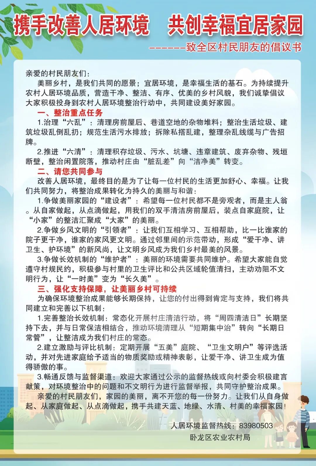致全区村民朋友的倡议书