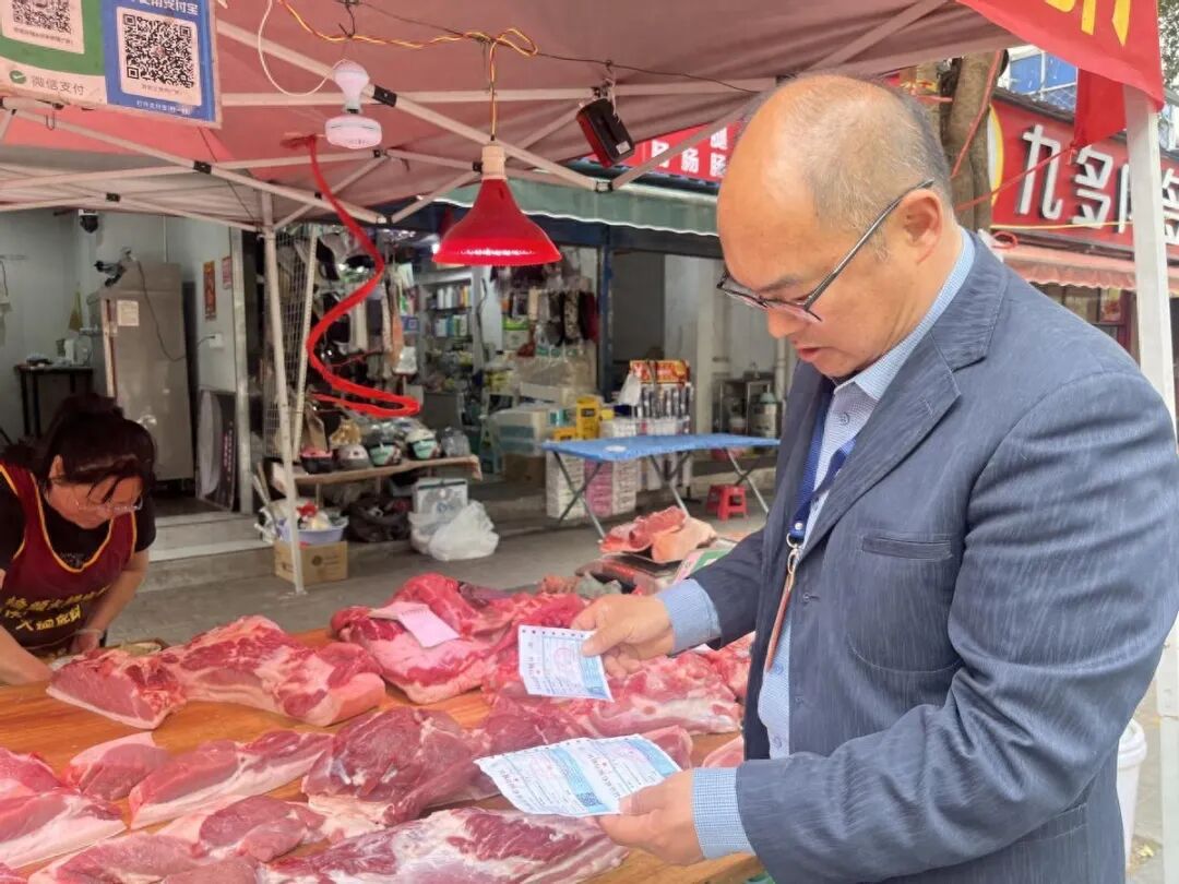 检查过程中,工作人员坚持从严、从细、从实原则,对辖区生鲜肉经营门店进行逐户排查。重点核查经营户营业执照、食品经营许可证等资质是否齐全有效,严格查验动物检疫合格证明、肉品品质检验合格证明“两证”是否完备,仔细核对肉品来源、检验标识、保质期等关键信息,坚决杜绝过期变质、来源不明、未经检疫的肉品流入市场、摆上餐桌。