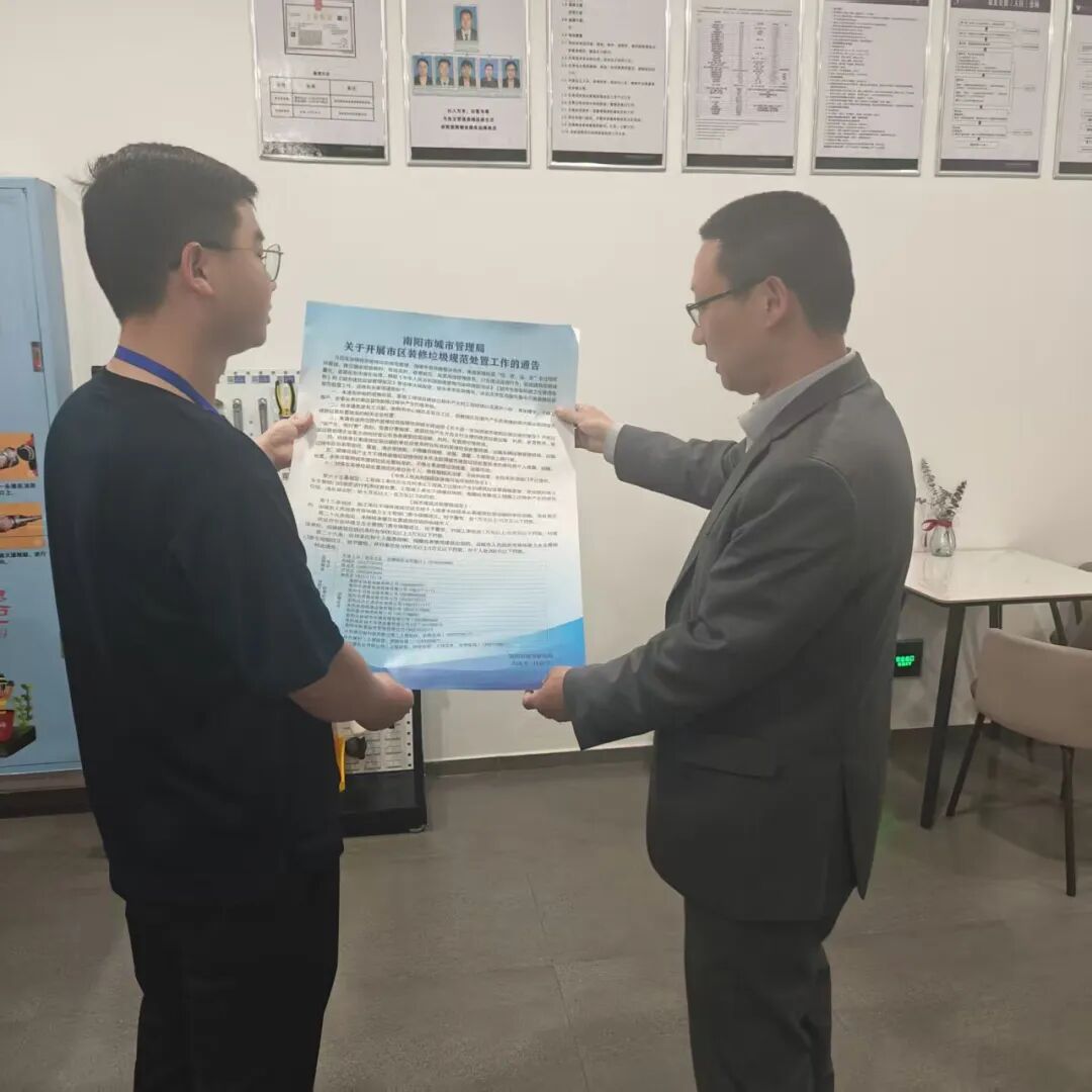 走访过程中,工作人员现场宣讲《南阳市城市管理局关于开展市区装修垃圾规范处置工作的通告》,详细解读装修垃圾收集、运输、处置等各项规定,要求各物业公司严格履行管理责任,全面落实《通告》各项要求。同时,重点强调装修垃圾管理相关法律法规及违规处罚依据,引导物业企业增强环保意识和法治意识,从源头杜绝乱堆乱放、随意处置等行为,减少环境污染隐患。